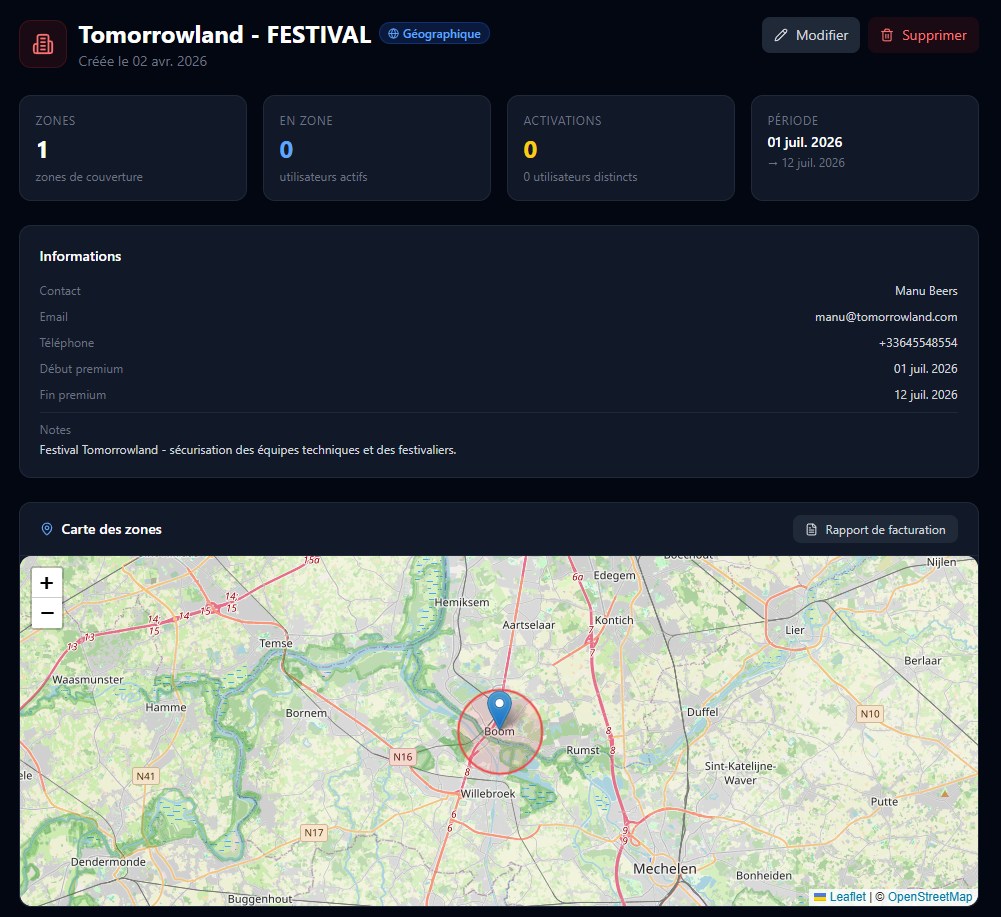 Un utilisateur entre dans votre zone — il reçoit instantanément le niveau de protection maximal. Sans inscription, sans action. Il repart — son compte revient en version gratuite.